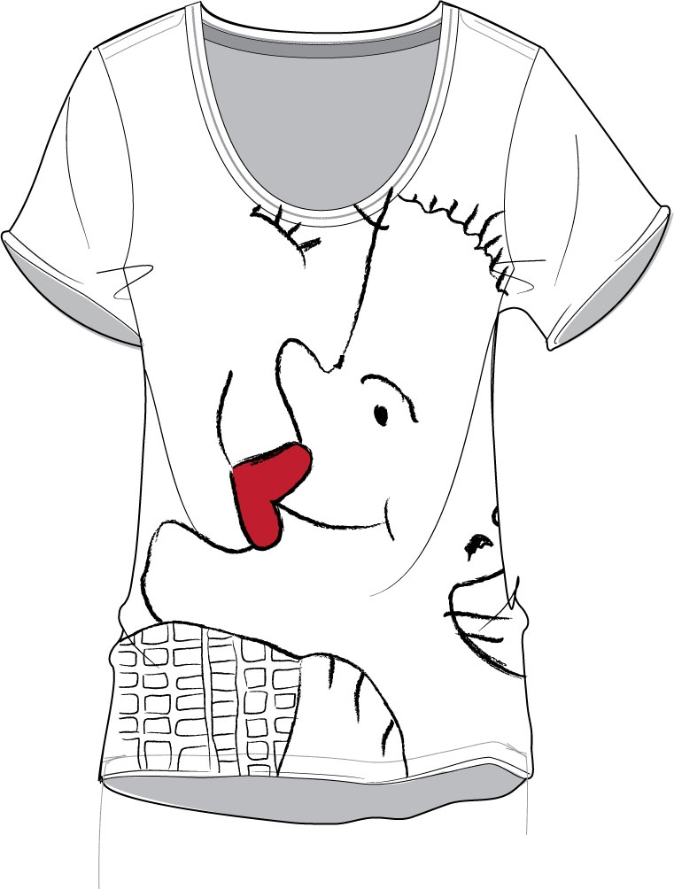 “Pensei em algo bacana, alegre e que as pessoas gostassem de usar no dia a dia. O desenho da camiseta representa duas pessoas entrelaçadas, demonstrando carinho, generosidade, afeto, dois rostos que formam um só, num gesto de solidariedade. Acho que as pessoas estão precisando disso”, comenta Isabela Capeto.